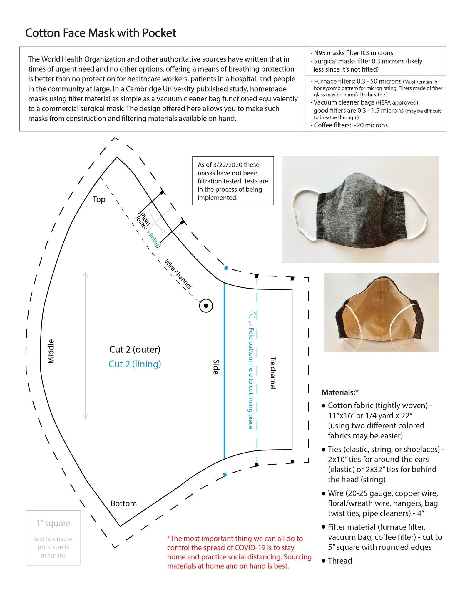 In times of crisis, we can all step up in our own ways. During the Covid-19 Pandemic I was fortunate to be in the center of a large Venn diagram, and collaborated with many people to produce this design. This mask was designed to be deliberately more complex than others circulating on the internet during that time. It was created to provide a more secure fit to improve safety and incorporated a filter pocket to enhance efficacy.
